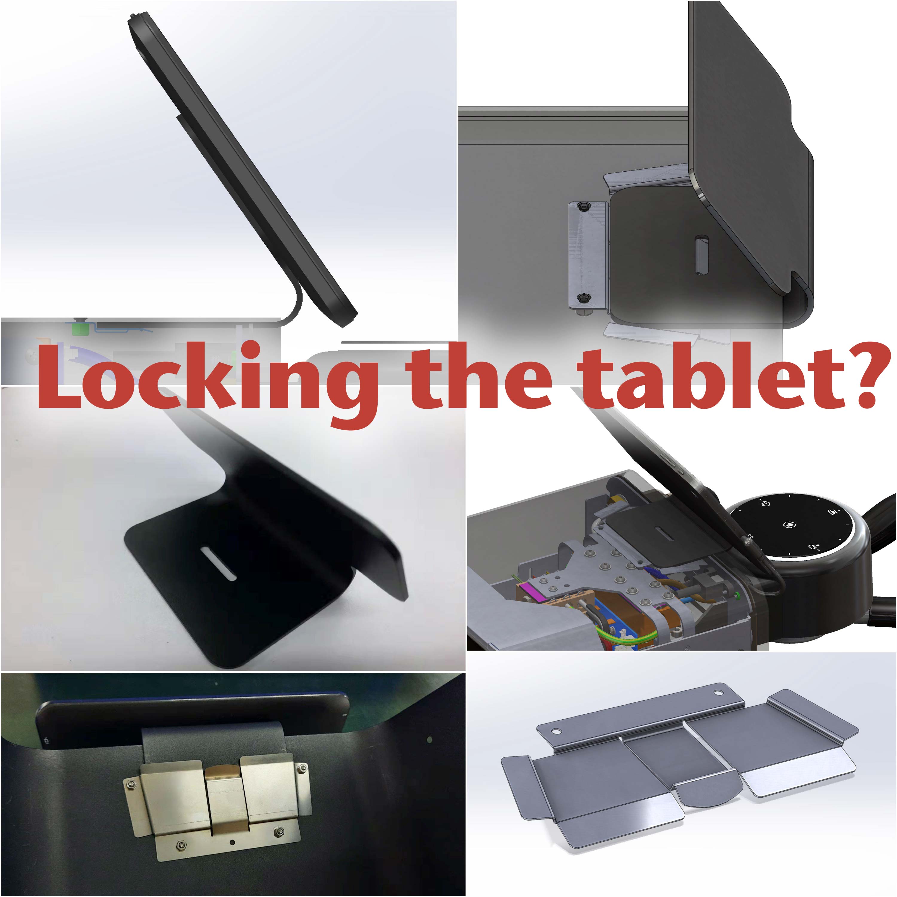 FEEDBACK WANTED: in the current tablet stand design, the tablet can be removed at any time. It cannot be locked. In a cafe, or other public situation, would this be a worry? It's not obvious that the tablet can be removed. We're thinking about designing a variation on the locking spring, which makes tablet removal impossible, without taking the main cover off (it's held in place with 8x Torx T10 screws).