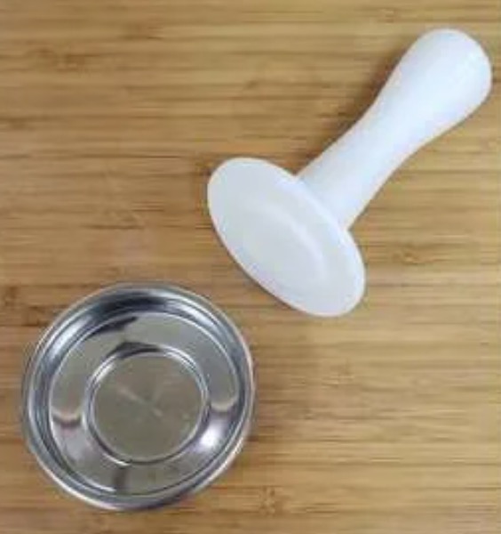 We've designed a special tamper for this basket with a , and made the 3D file available for free on Thingiverse. https://www.thingiverse.com/thing:4771376 You can 3D print it yourself or have it printed for you by a service such as https://www.3dhubs.com/