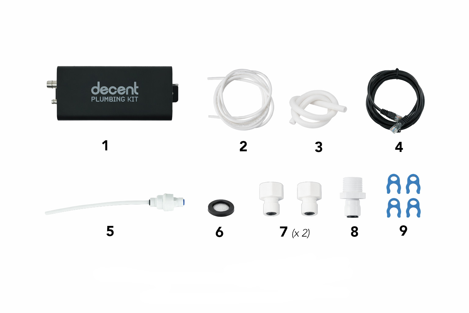 The Decent Espresso machine has a built-in 2-liter water tank that you normally have to fill by hand. With our plumbing kit, you can connect your espresso machine to pressurized water, such as you'd get from an RO-system. It is compatible with all the models in the DE1 series (including the DE1PRO, the DE1XL, and the discontinued DE1PLUS) and with Bengle.