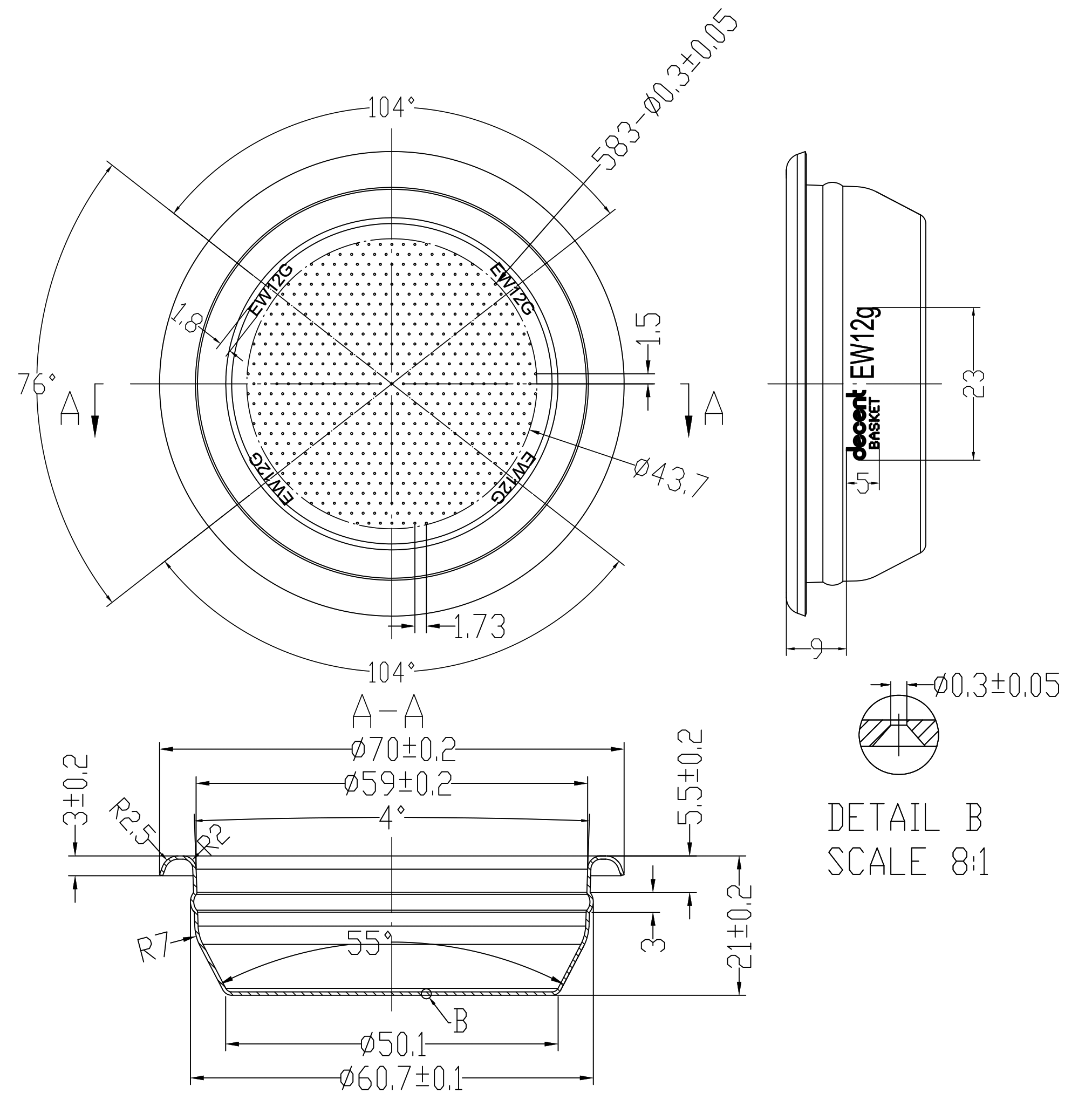 Extremely waisted small portafilter basket (50mm, 11g-14g)