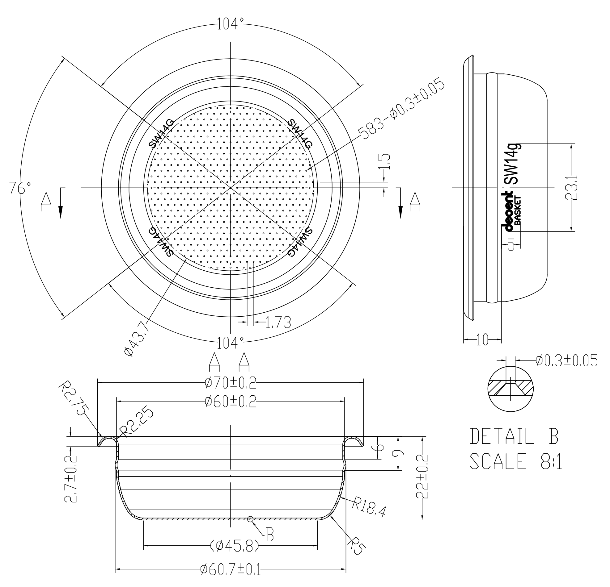 Slightly waisted medium portafilter basket (46mm, 12g-14g)